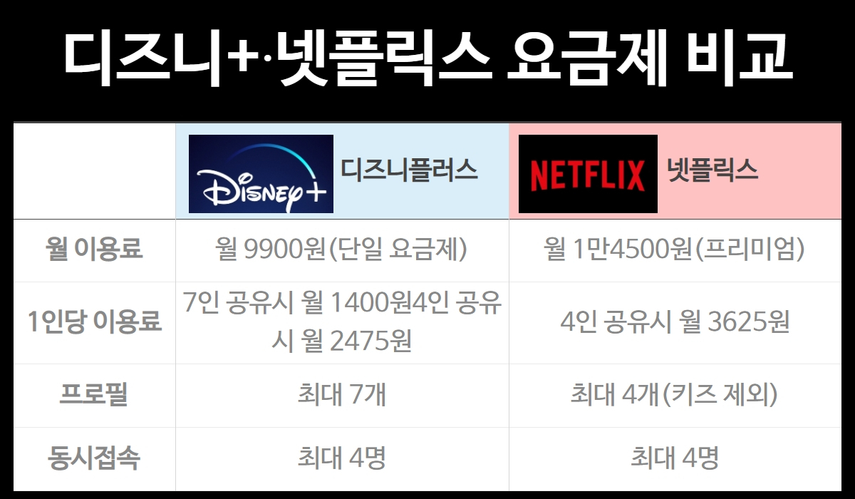 “똑같은 동시접속 4명에 ‘디즈니+ 월 9900원’ vs. ‘넷플릭스 1만4500원’”