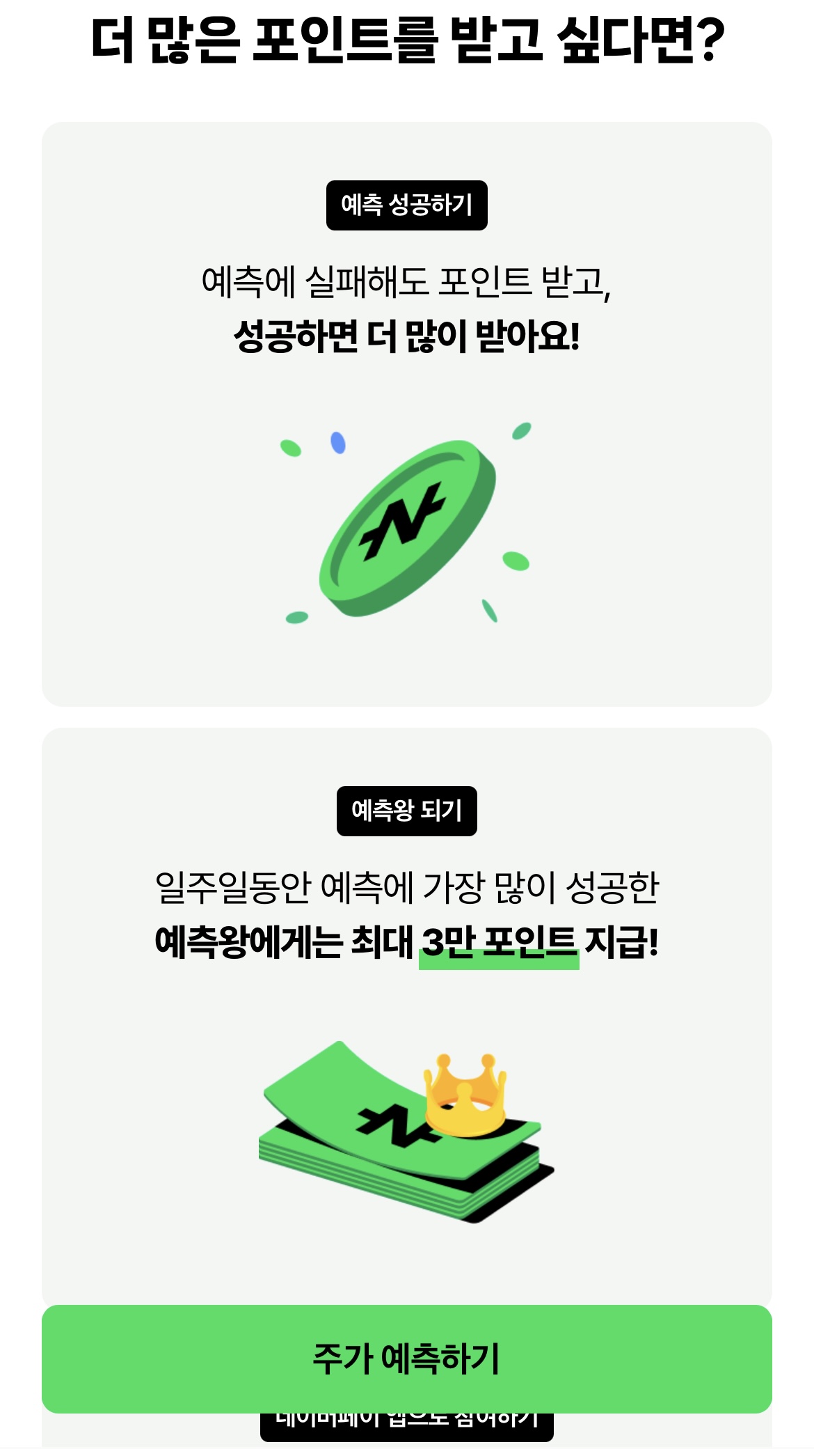 - 📌 **1등(정확한 예측)** – 네이버페이 포인트 최대 50,000P