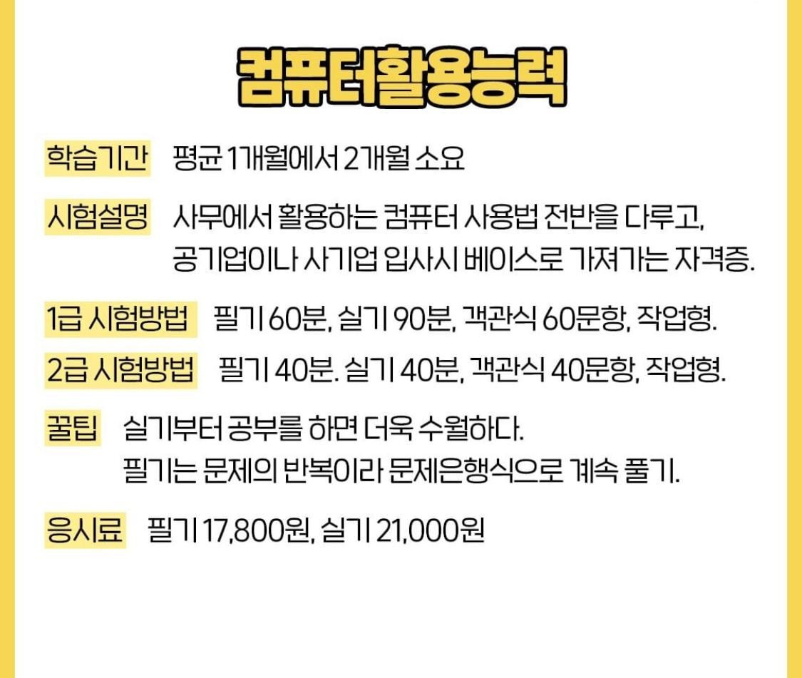 단기간에 딸 수 있는 자격증을 간단하게 정리해 놓은 것들과 꿀팁을 공유한다.