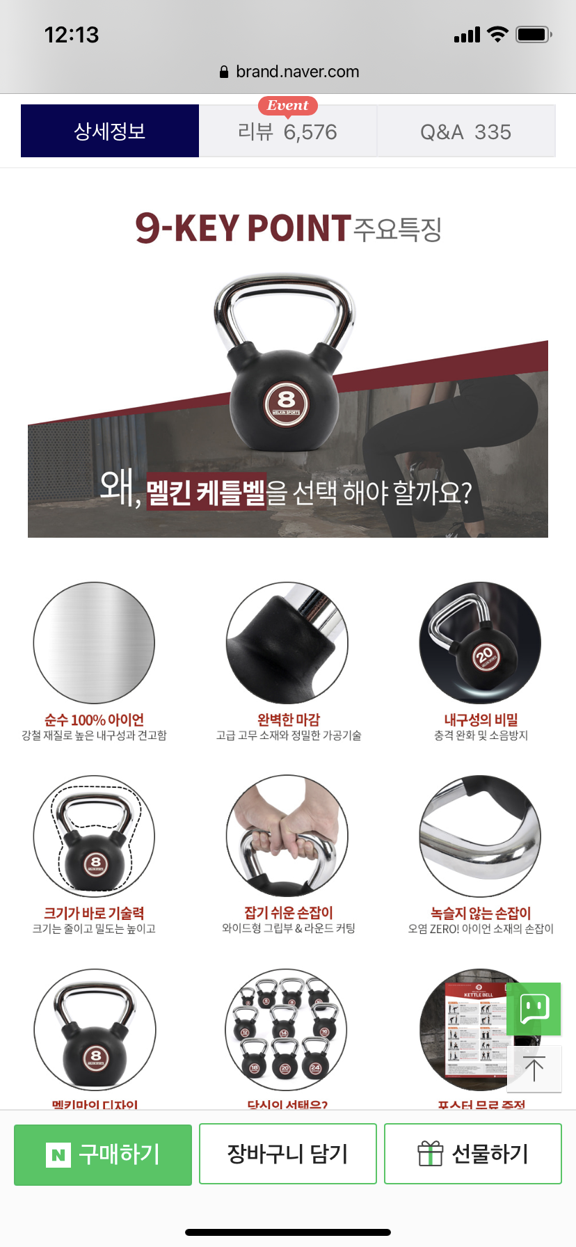 홈트를 하기 위해 케틀벨을 샀는데 후기를 미뤄두고 있어 써 본다. 일단 피티를 받으면서 캐틀벨 스윙 자세를 기본적으로 동작을 배웠고, 6kg이 부담없으면서 적합한 중량인 것 같아 선택했다.