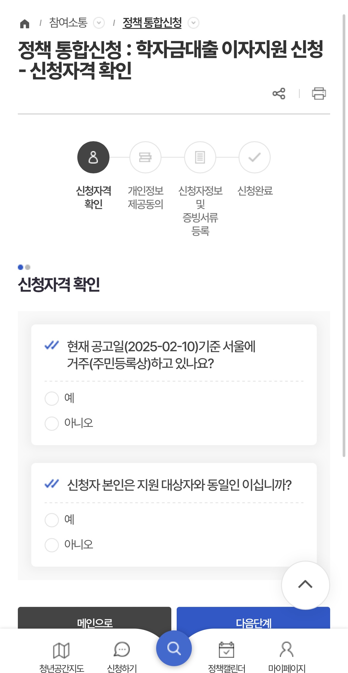 - ✅ 로그인 후 ‘금융복지’ → ‘학자금대출 이자 지원’ 선택