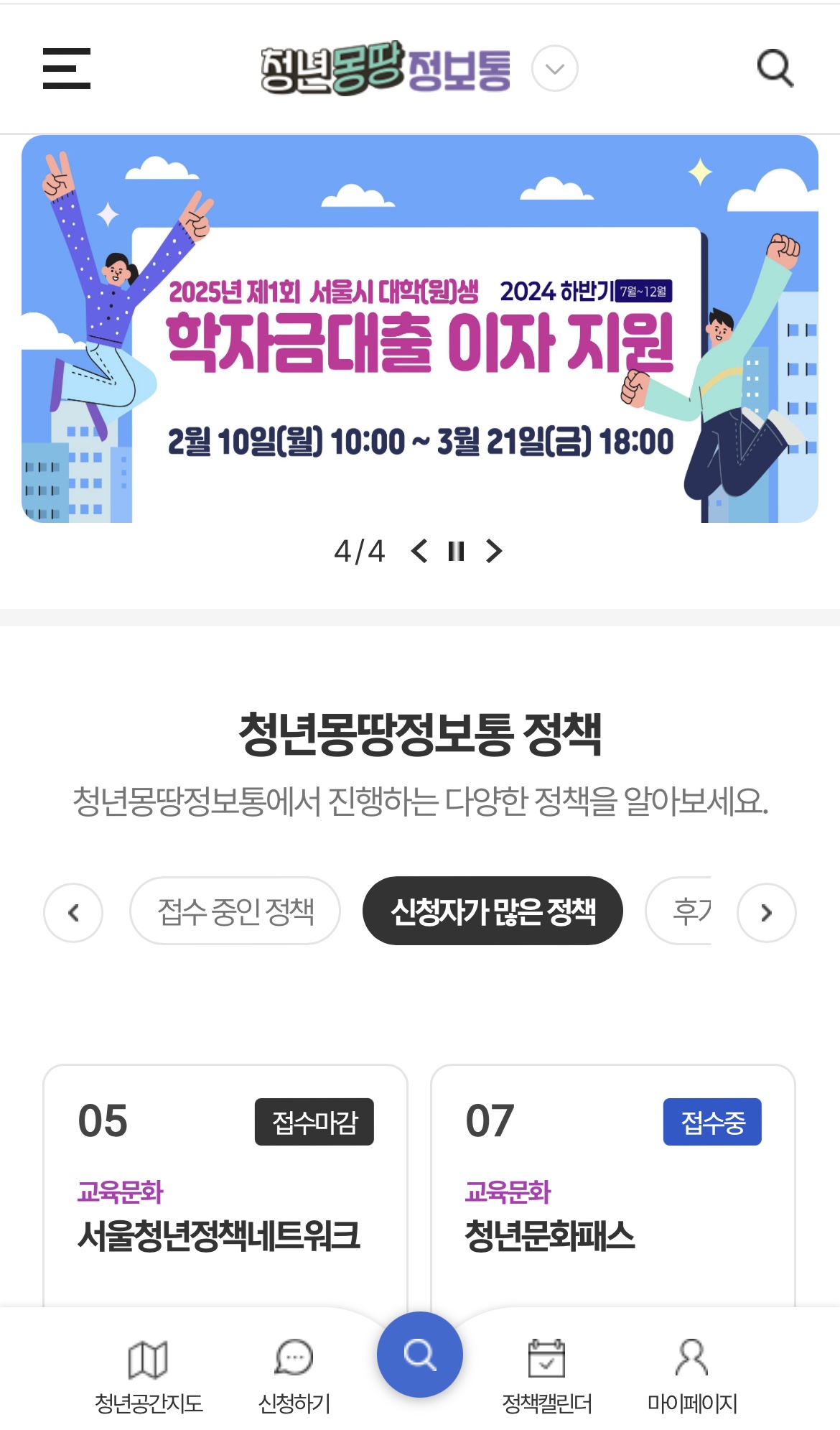 - ✅ 서울시 청년몽땅정보통 홈페이지 접속