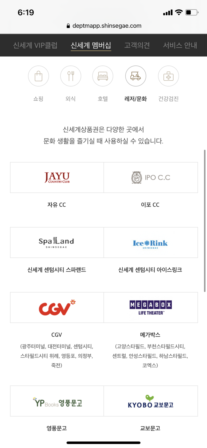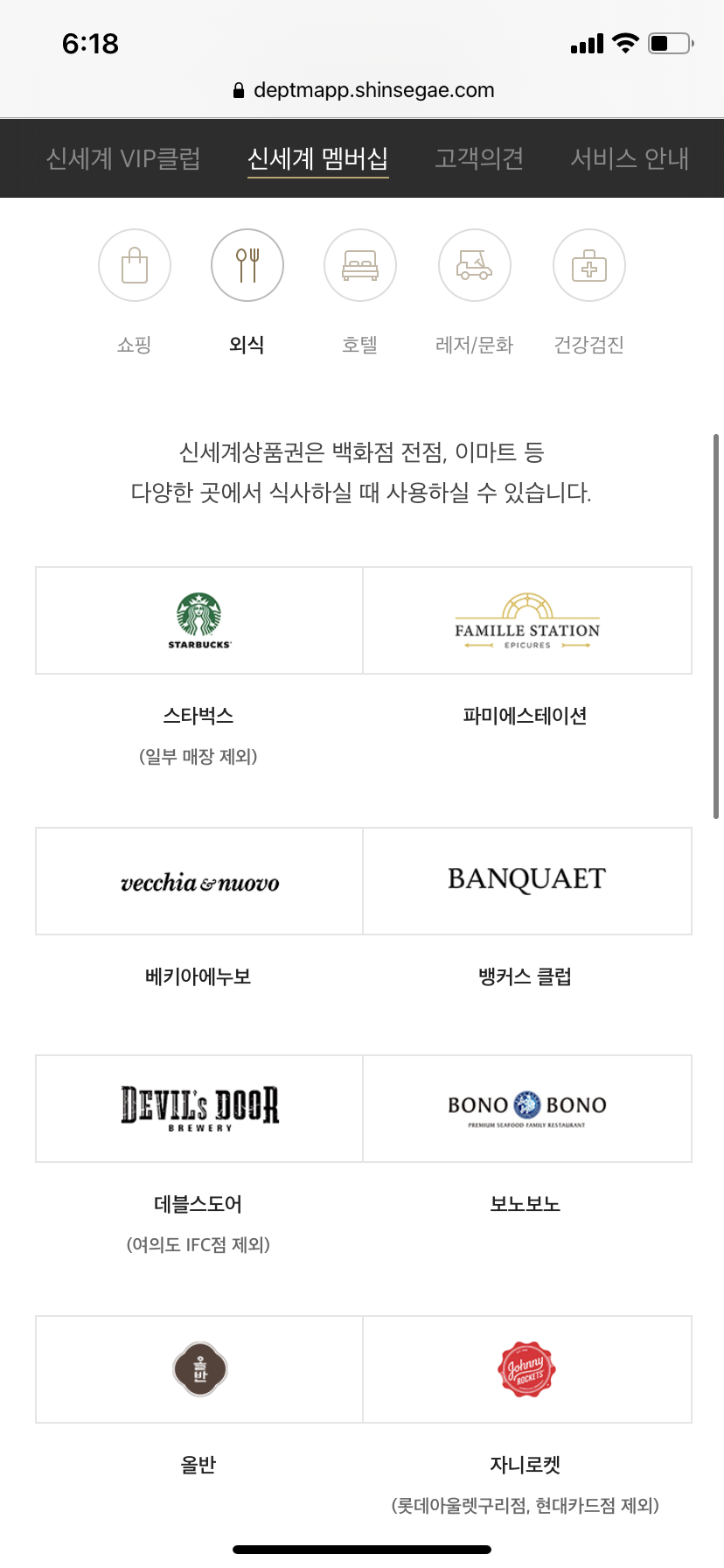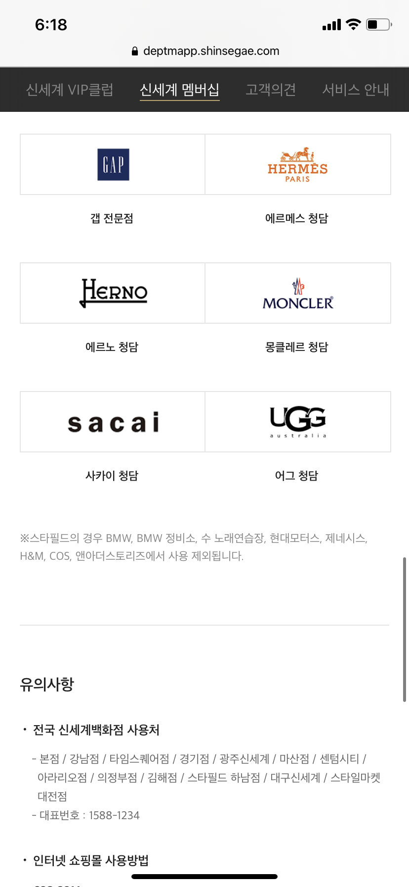 신세계 상품권 권종과 품목별 사용처를 정리해 보았다. 꽤 많은 곳에서 사용이 가능하다.