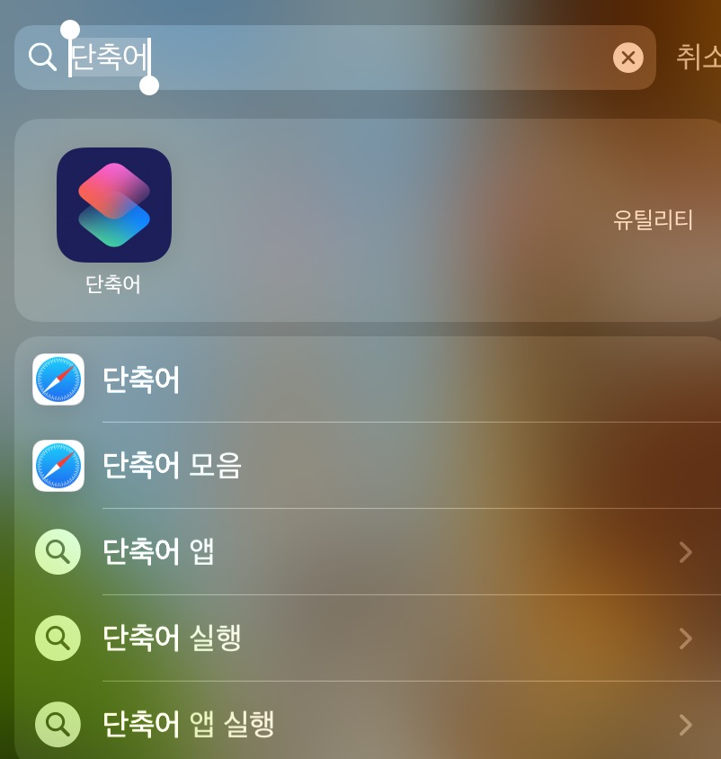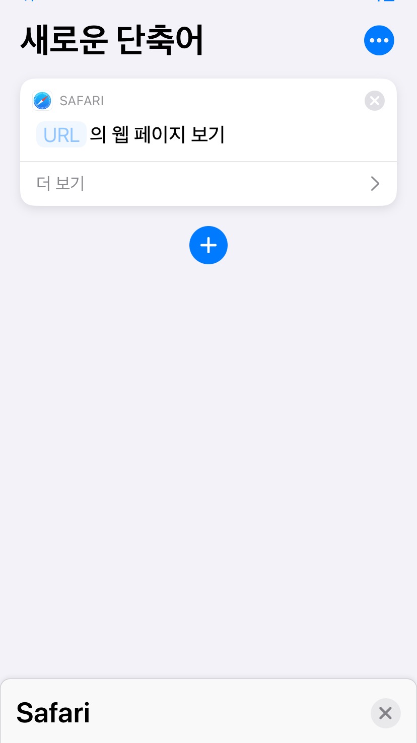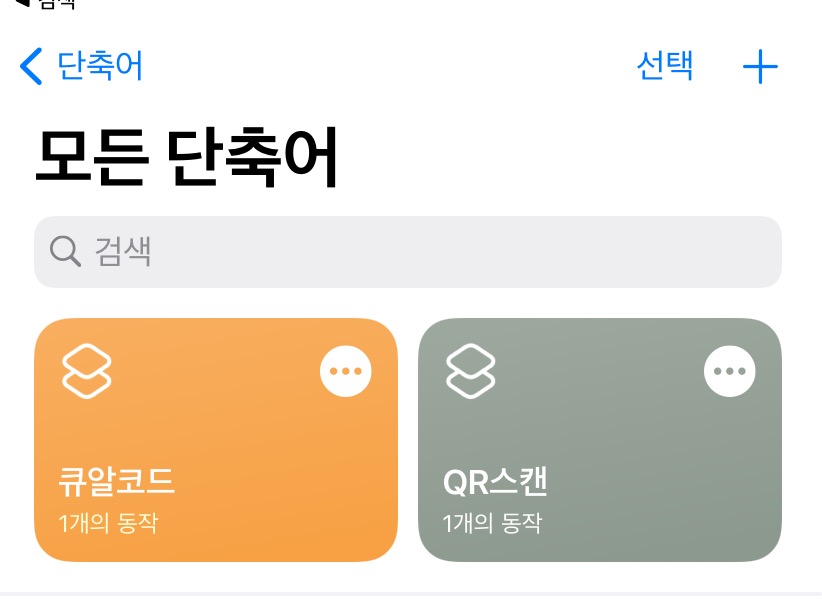 단축어 앱을 켠 뒤, 모든 단축어에서 오른쪽 위의 +를 눌러준다.