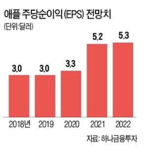 이번 주가 재평가 흐름은 애플에 대한 투자자들의 또 다른 기대를 반영하고 있다. 지난 2분기 애플 서비스 부문의 매출총이익률은 70%를 웃돌며 사상 최고치를 기록했다. 서비스 부문에는 애플 앱스토어, 애플뮤직, 애플TV 등이 포함돼 있다. 수익성이 높아지면서 올해 주당순이익(EPS)은 지난해(3.3달러)보다 58% 많은 5.2달러를 기록할 전망이다. 수익성, 현금 창출 능력, 시장지배력 등을 기반으로 높아진 기대치가 현 주가에 반영될 수 있다는 뜻이다.