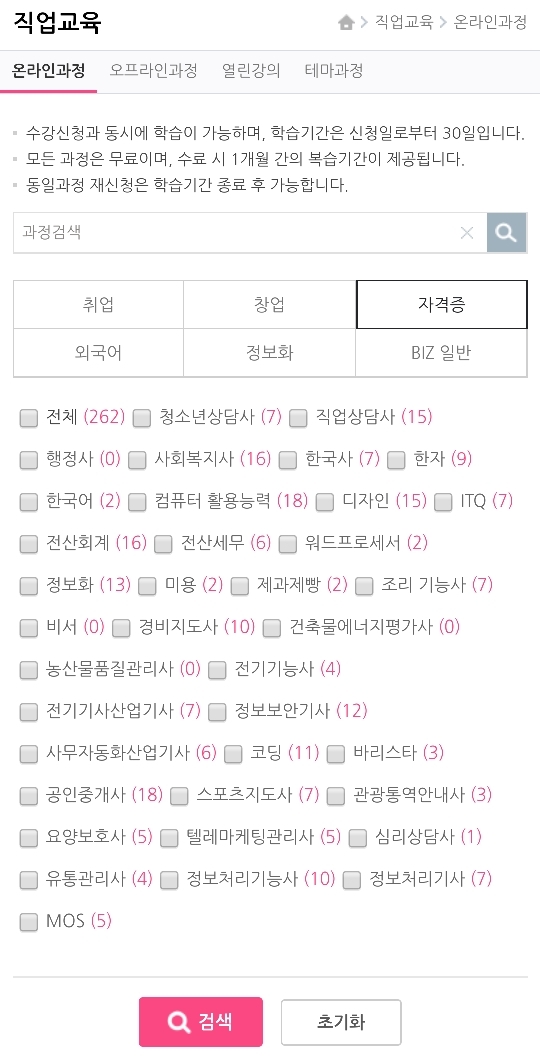 모두 무료 과정이고, 취업에 맞게 필요한 특성화된 유용한 과정들이 많이 있으니 활용해 보길 바란다.