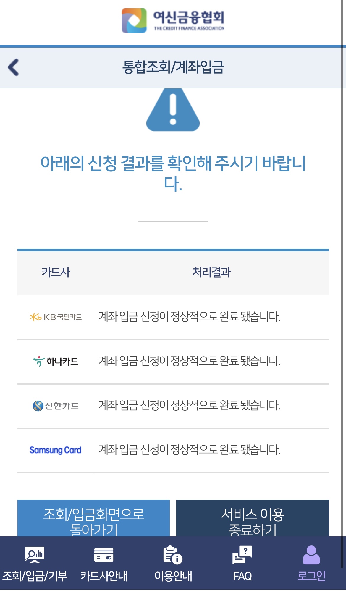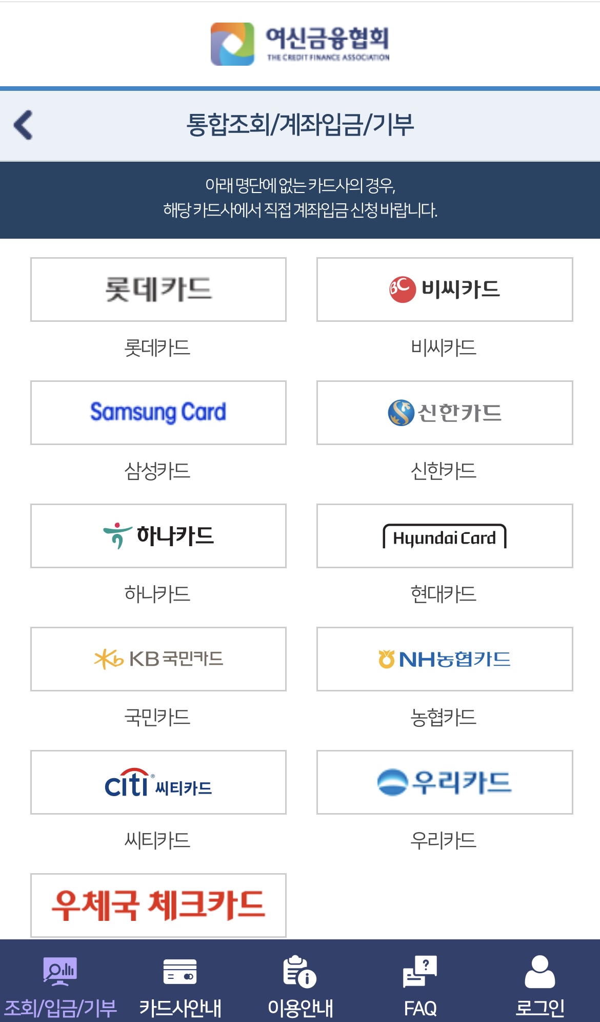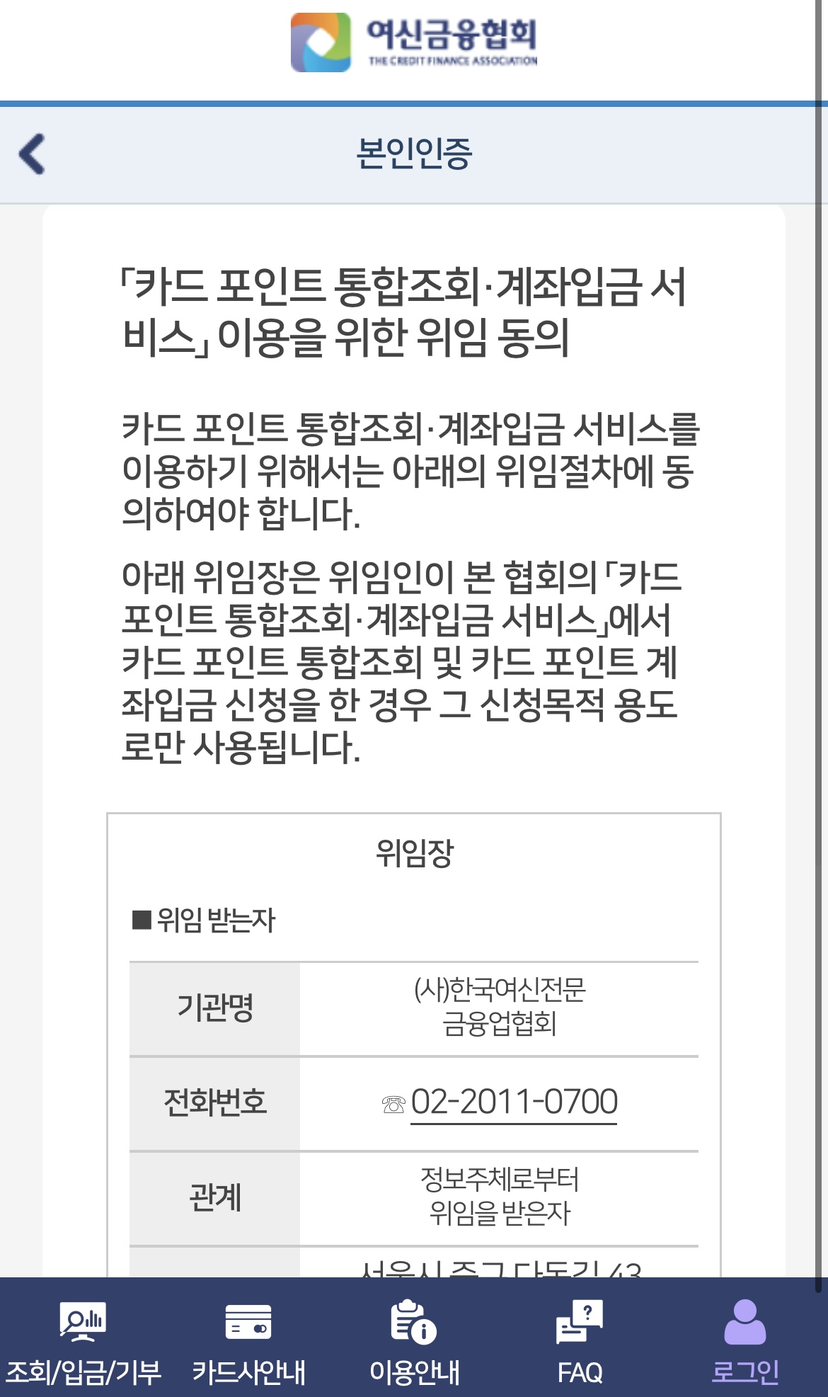 - 여신금융협회 카드포인트 통합조회 사이트 접속