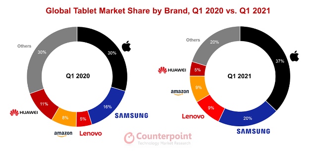 카운터포인트리서치는 "전 세계 태블릿PC 시장이 코로나19로 인한 긴 침체에서 벗어나 다시 성장세를 그리고 있다. 재택근무와 온라인 교육의 확산으로 인해 대화면 모바일 장치(태블릿PC) 관련 수요가 증가하면서 지난해 태블릿PC 시장은 전년과 비교해 19% 성장했다. 이러한 성장세는 올해 1분기에도 이어져 전년동기와 비교해 53% 급성장했다"고 밝혔다.