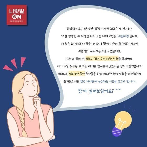 집값이 천정부지로 치솟고 있는 현실에서 청년들이 취업난과 맞물려 집을 구하기란 여간 어려운 아니 불가능한 현실일지도 모른다. 오늘은 정부의 청년 주거 정책을 사진을 첨부하여 정리해 본다.