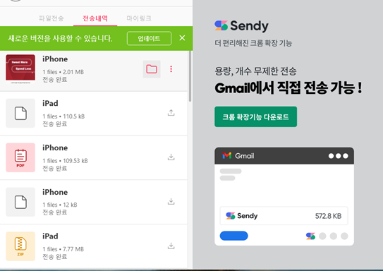 전송이 완료되면 폰과 노트북에 다음과 같이 나타난다.