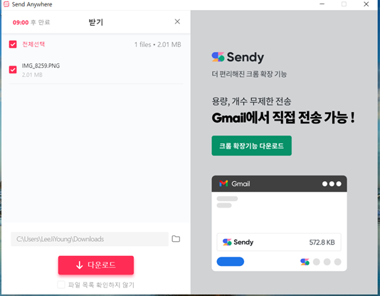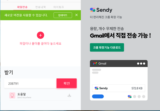 앱 이름은 샌드 애니웨어 send anywhere이다.