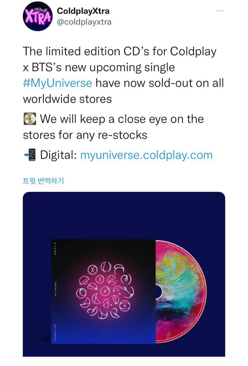 콜드플레이와 방탄소년단 협업, 싱글 발매 (0) | 2021.09.14 |